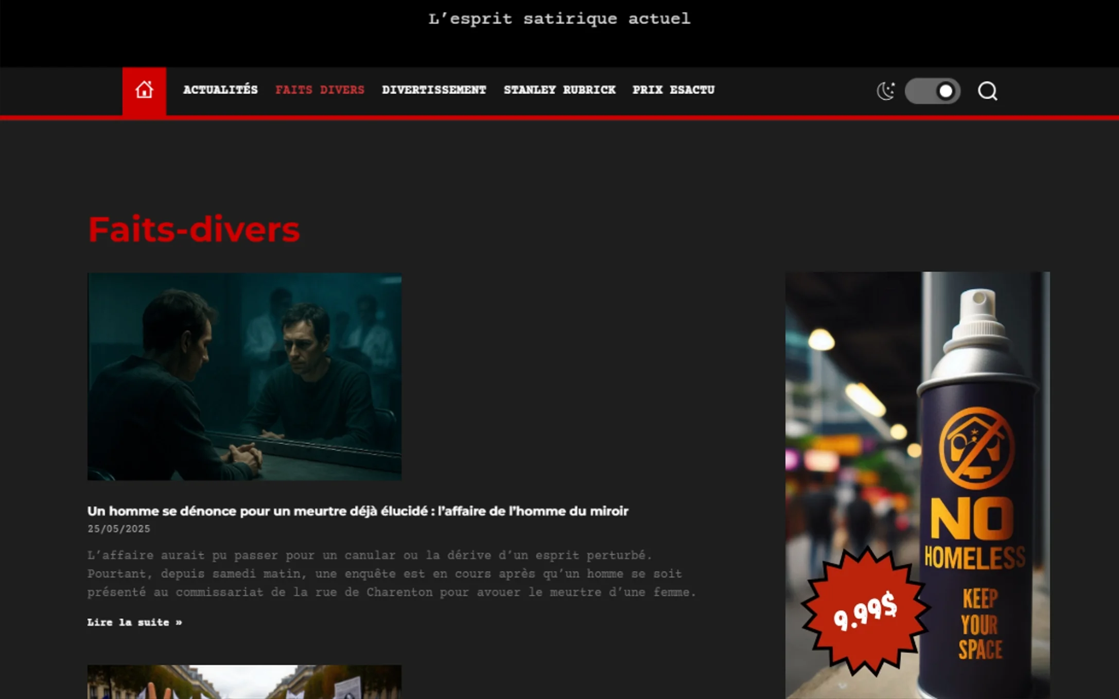 Armand J., fondateur de LesActu, m’a sollicitée pour la création d’un site web dématérialisé et d’un blog à destination d’un public jeune, averti, avec un fort attrait pour l’humour au second degré.