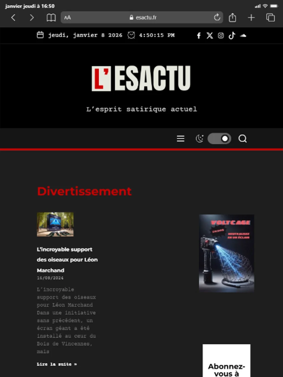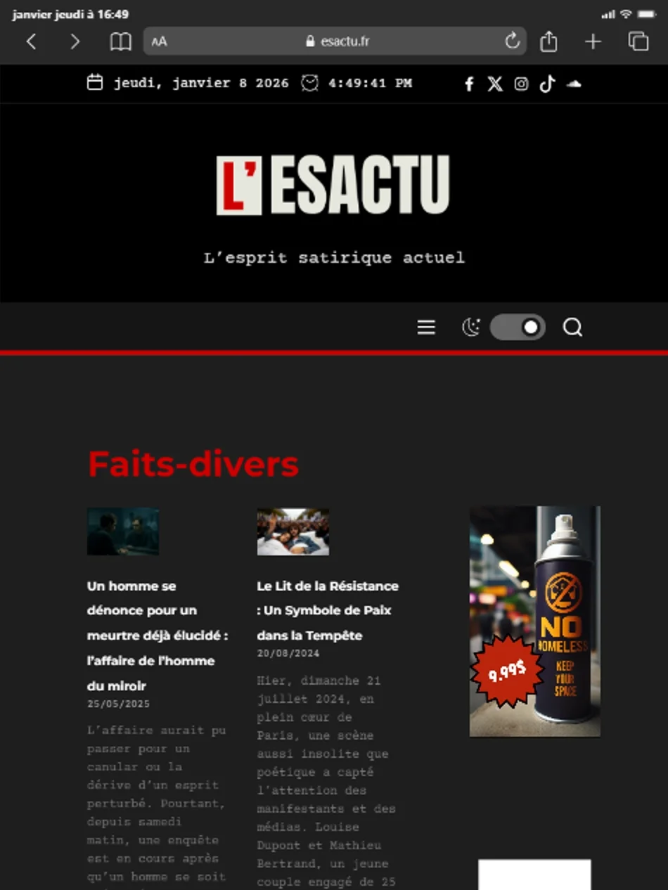 Ma première stratégie a été de définir clairement la cible et de comprendre les attentes d’un public jeune, friand d’humour décalé. Pour cela, j’ai étudié des exemples de sites comme Le Gorafi ou Le Canard Enchaîné, qui sont des références en termes d’articles parodiques et de second degré. Le but était de s’inspirer de ces modèles tout en apportant une touche plus contemporaine et adaptée aux goûts des nouvelles générations.