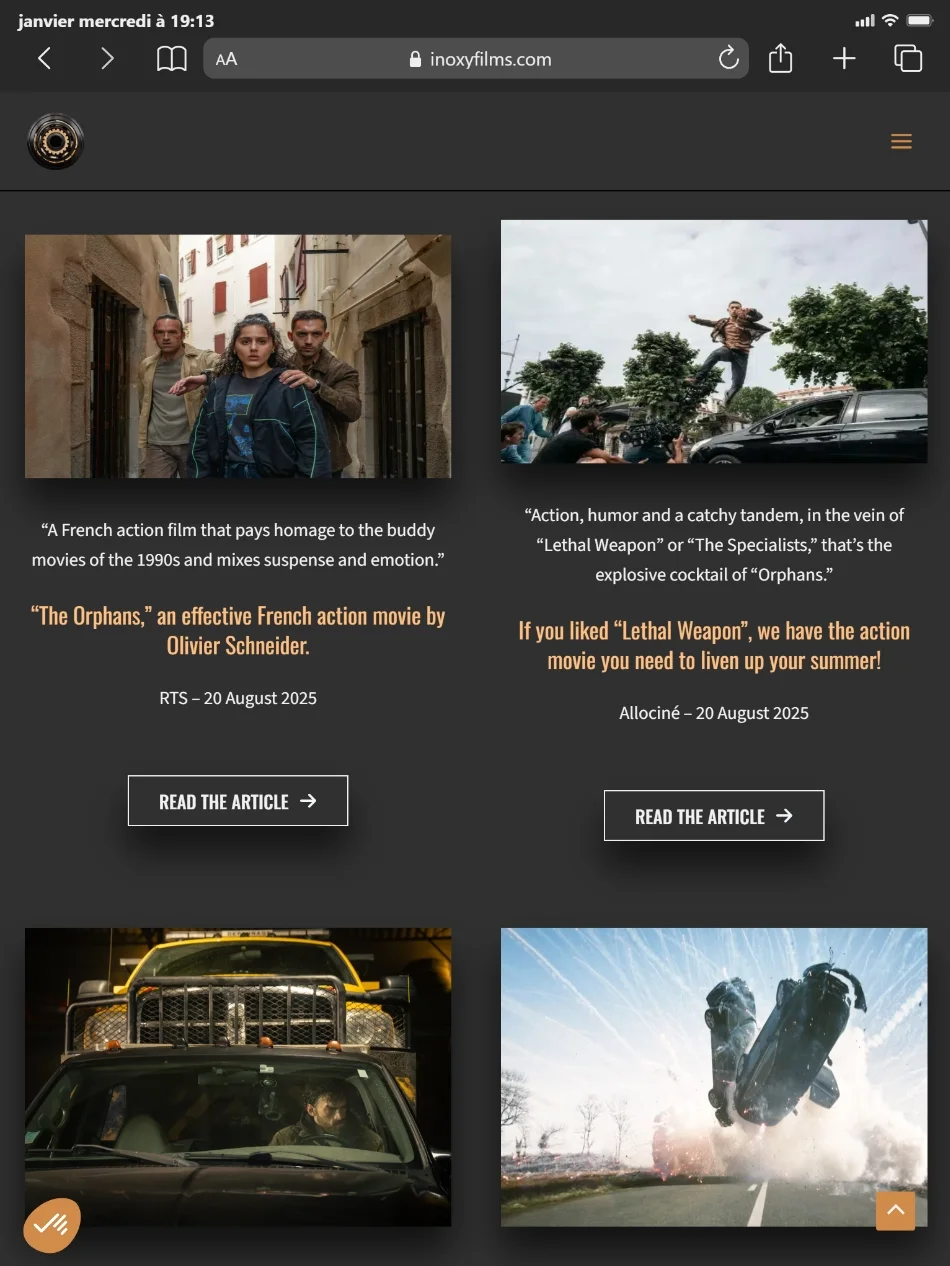 Inoxys Films, société de production française spécialisée dans le cinéma d’action à fort impact visuel (dont la trilogie Mal Perdu, diffusée sur Netflix), a fait appel à Wendy @Wendev pour concevoir leur site internet.